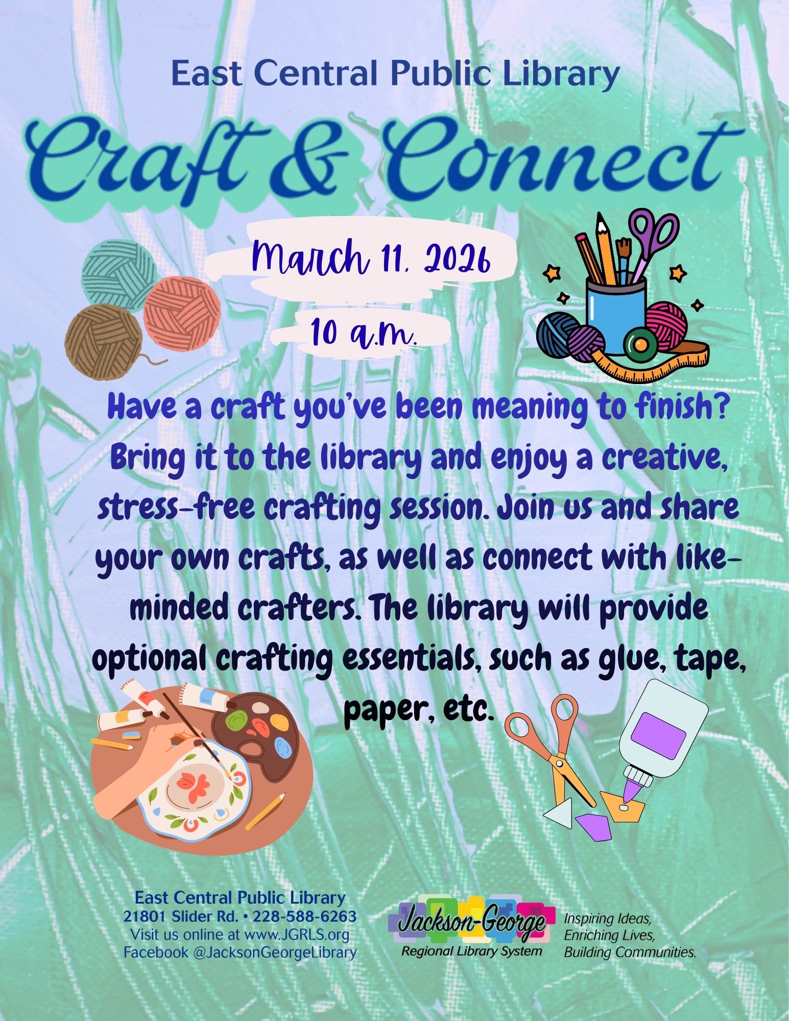 Hurley, MS – East Central Public Library is bringing creativity and community together with Craft & Connect on Wednesday, March 11, 2026, at 10:00 a.m.