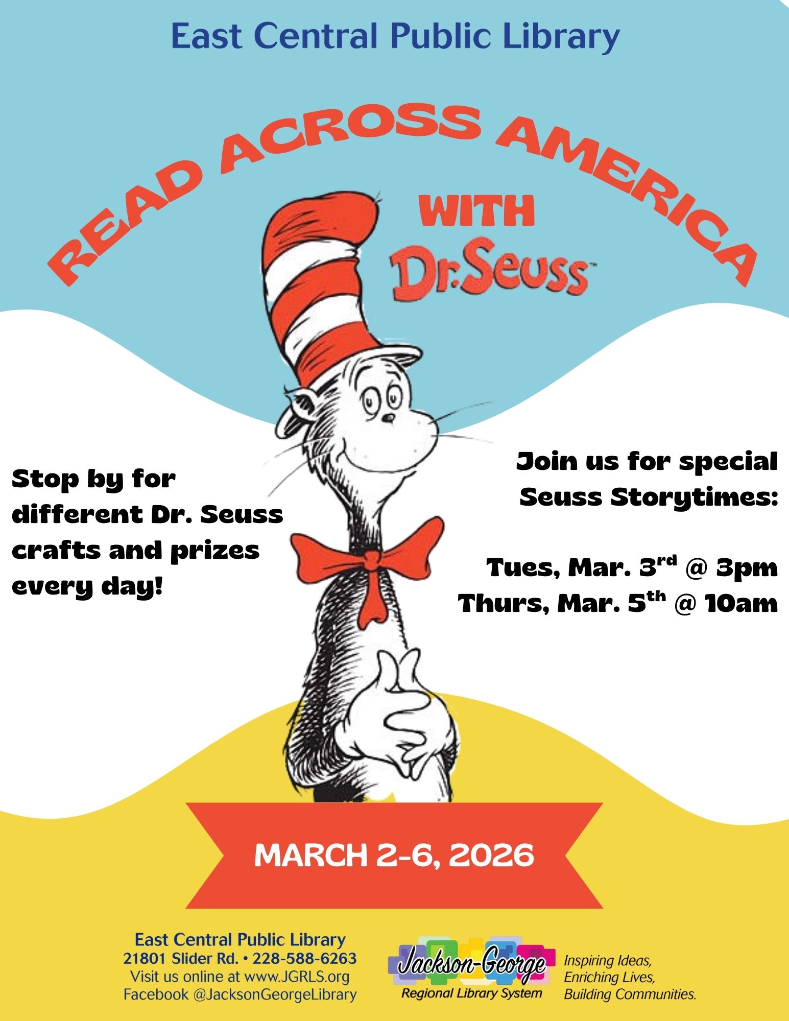 Hurley, MS – East Central Public Library is celebrating the joy of reading during Read Across America Week, March 2–6, 2026, with a week full of Dr. Seuss-themed fun!