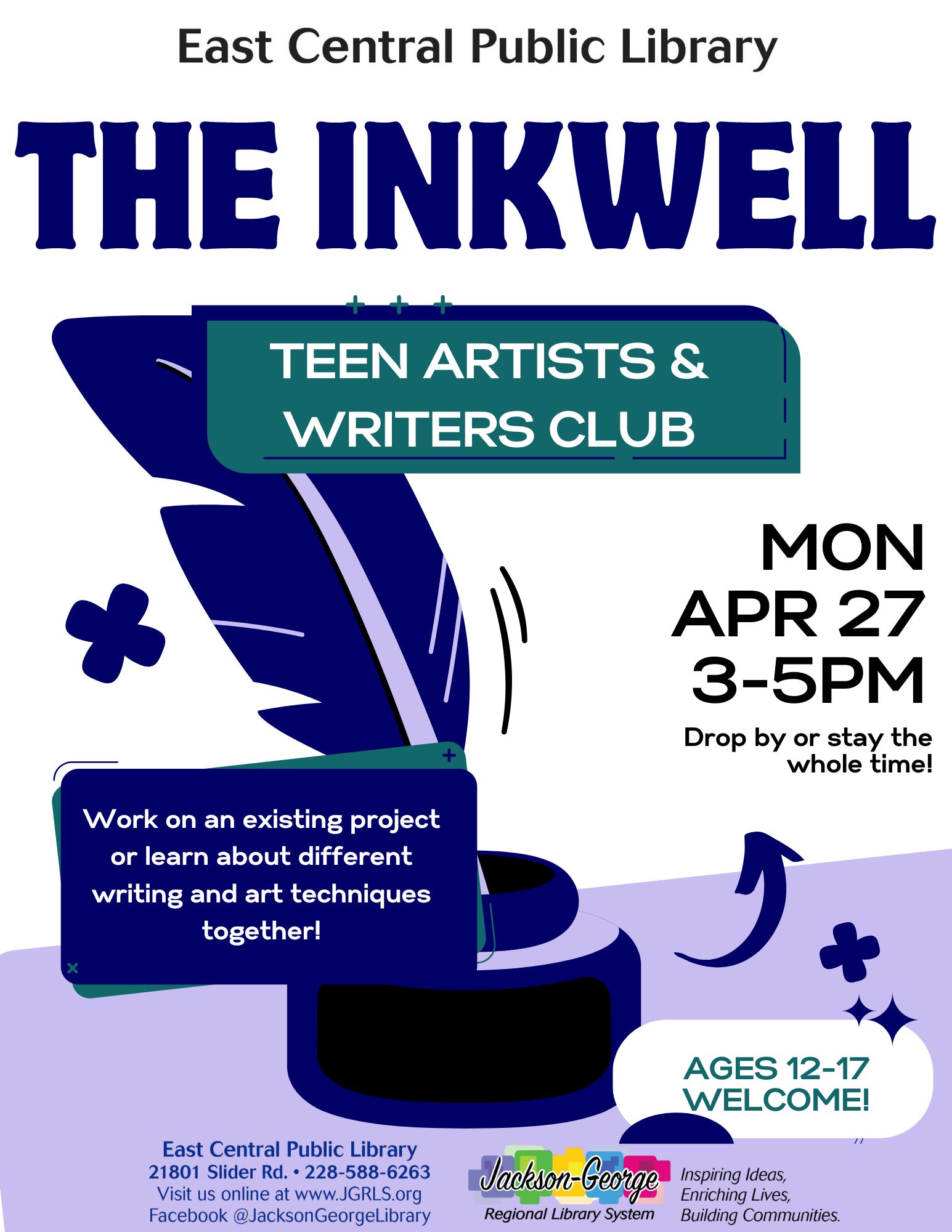 PASCAGOULA, MS — East Central Public Library invites teens to explore their creativity at The Inkwell: Teen Artists & Writers Club on Monday, April 27 from 3–5 p.m.