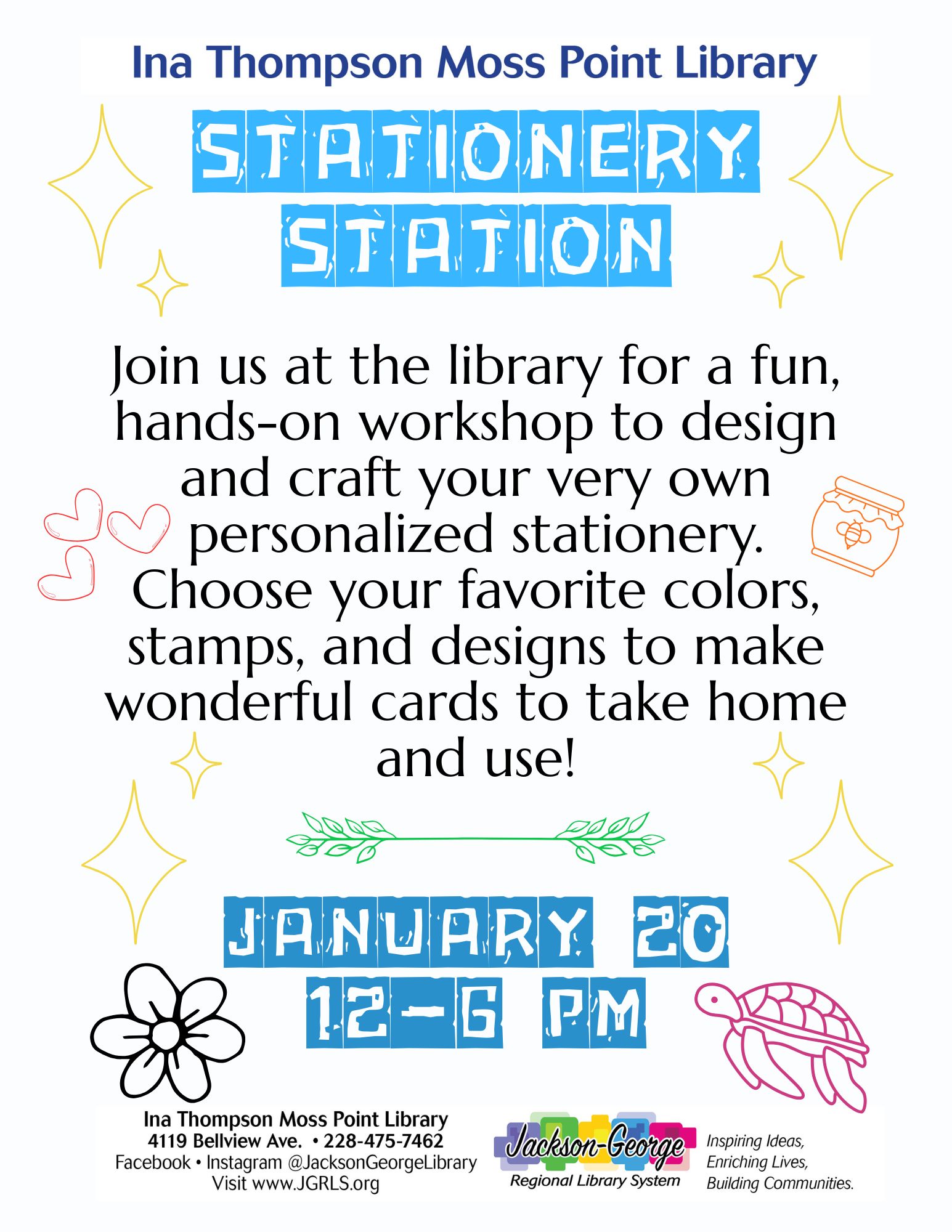 Ina Thompson Moss Point Library invites the community to tap into their creative side at Stationery Station, a hands-on workshop where participants can design and craft their own personalized stationery.