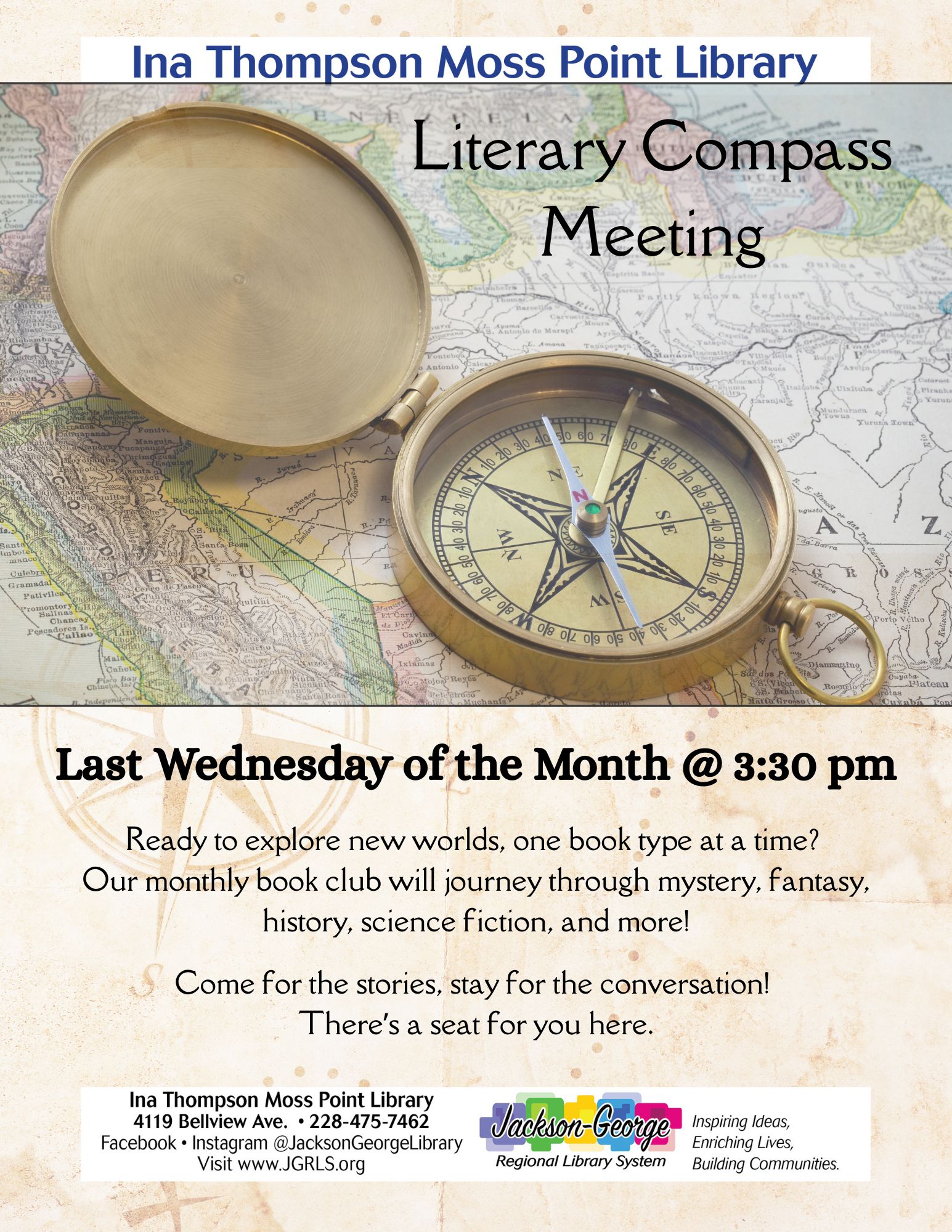 Ina Thompson Moss Point Library invites book lovers to chart a new reading course with the Literary Compass Meeting, a monthly book club designed for readers who enjoy exploring a variety of genres.