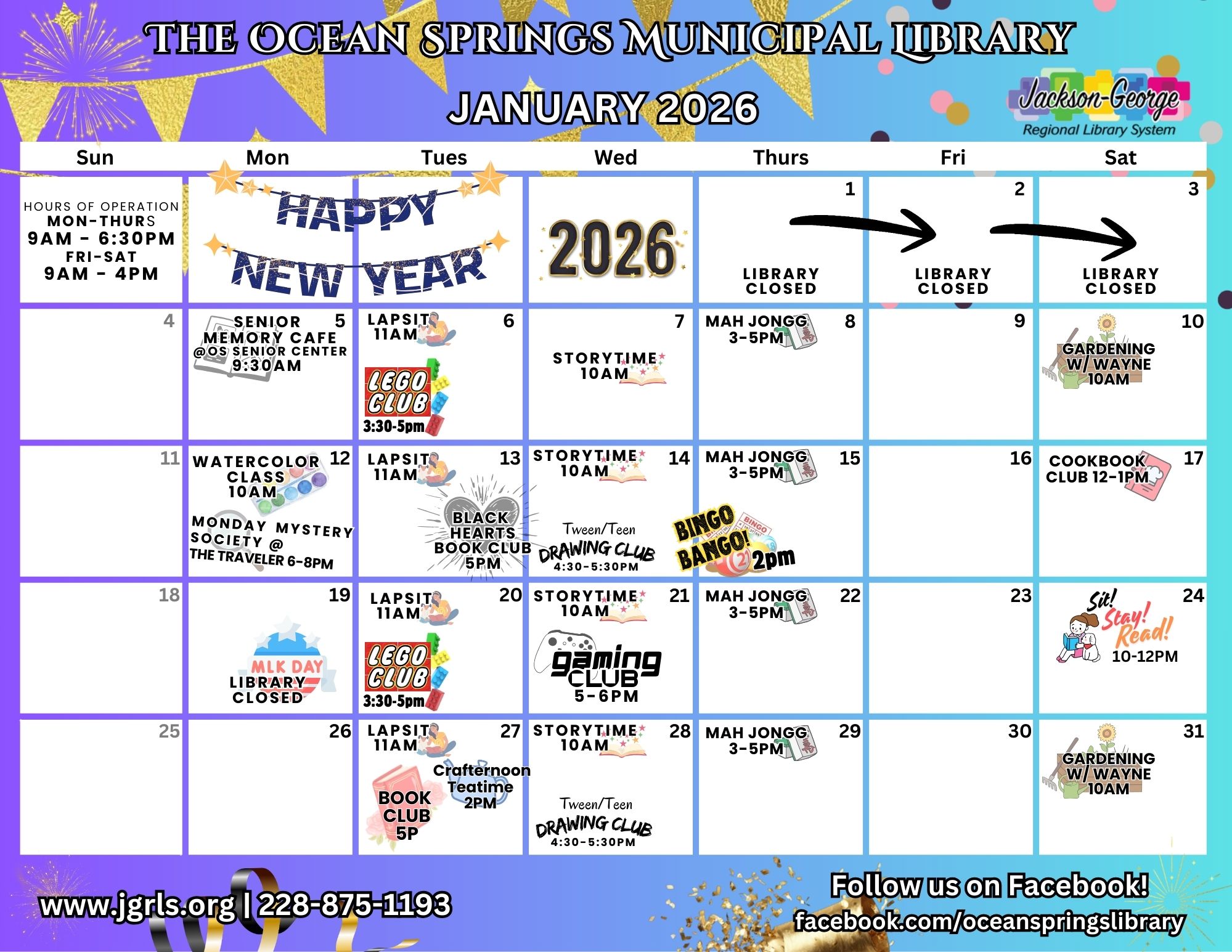 For more information, visit the Ocean Springs Municipal Library or explore www.JGRLS.org.