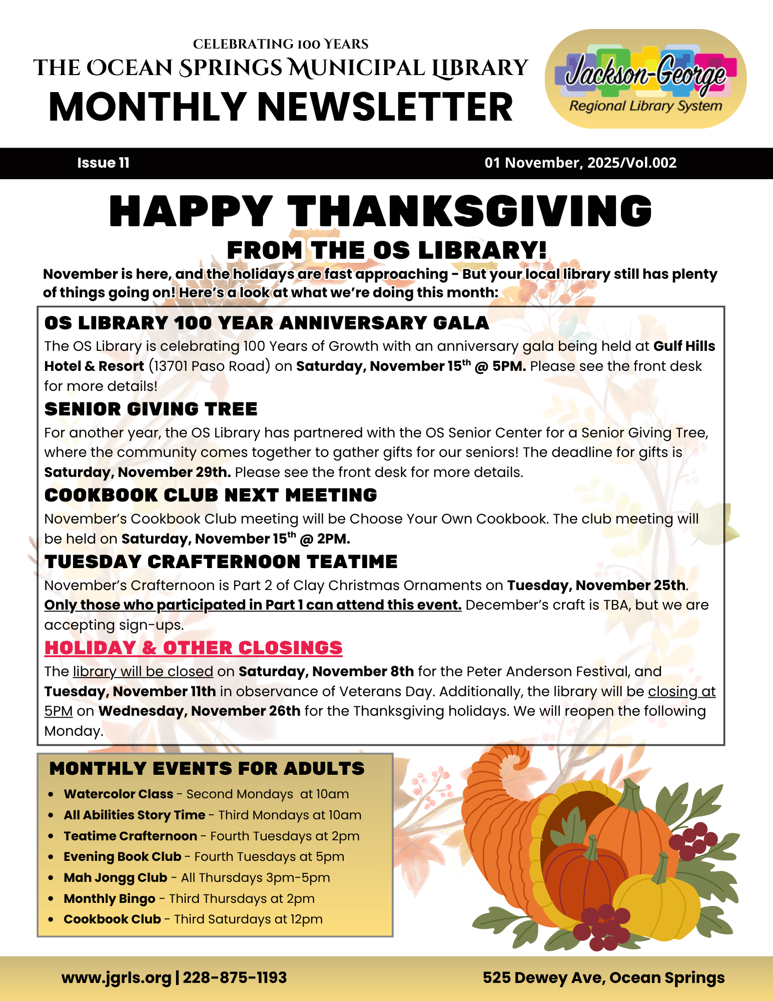 “The mission of the Jackson-George Regional Library System (JGRLS) is to provide high quality and relevant customer-oriented library and information services, collections of resources, and programming that serves to expand and enrich the lives of our citizens.”