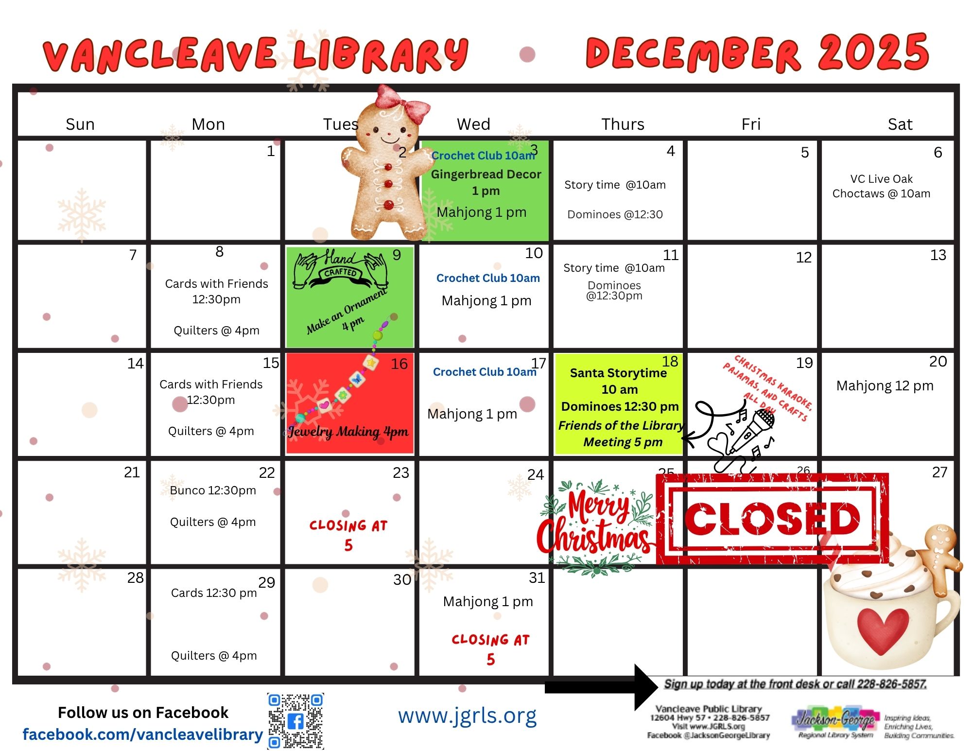 VANCLEAVE, MS – The Vancleave Public Library invites community members to connect, collaborate, and champion their local library by joining the Friends of the Vancleave Library. The Friends group meets on the third Thursday of each month at 11 AM to discuss upcoming programs, fundraising ideas, volunteer opportunities, and ways to enhance library services.