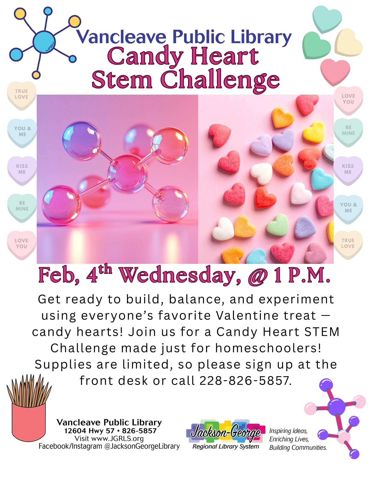 Vancleave, MS — Vancleave Public Library invites homeschool families to a sweet and educational program with its Candy Heart STEM Challenge on Wednesday, February 4, at 1:00 p.m.