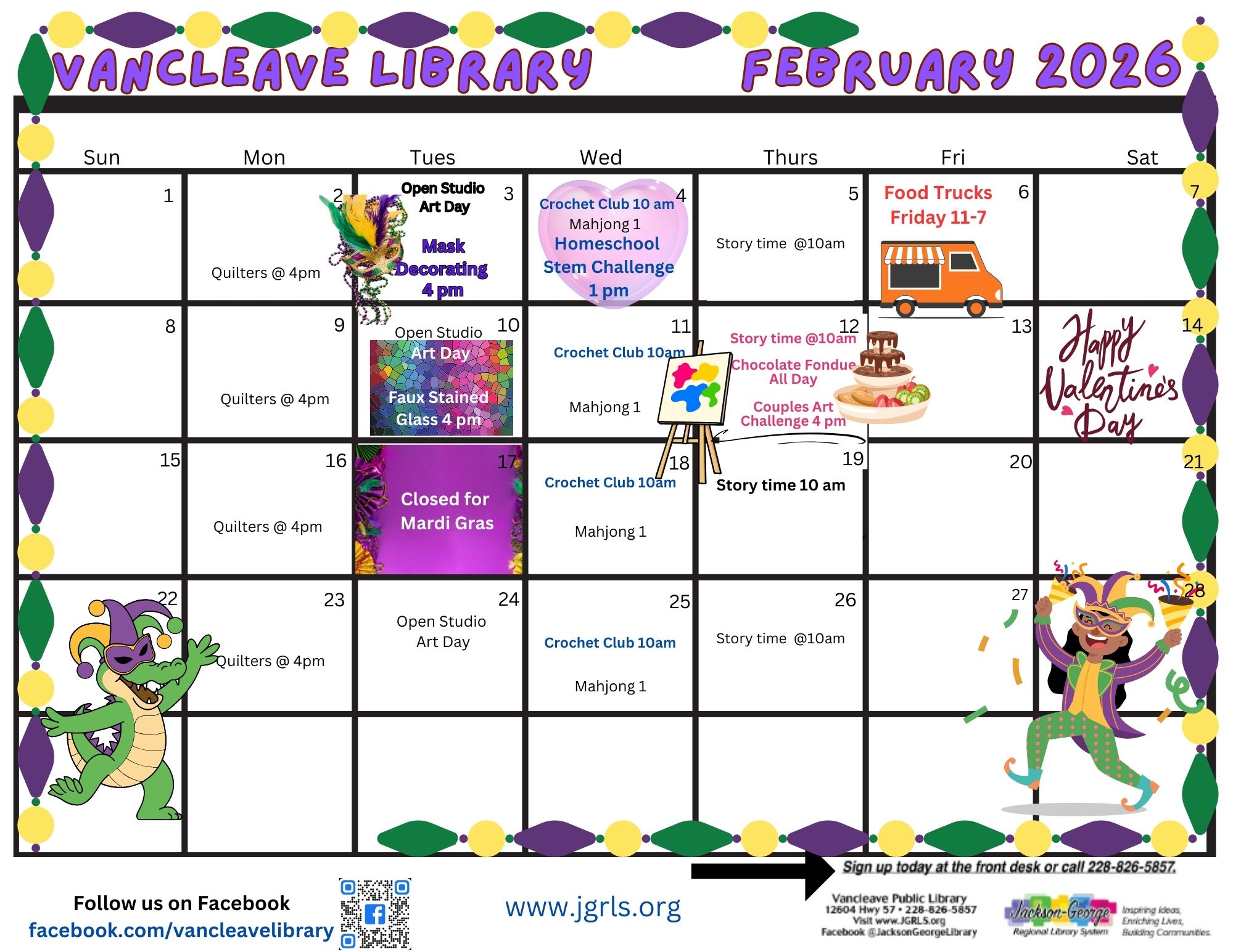 The event will take place at Vancleave Public Library, located at 12604 Highway 57. For more information, visit www.JGRLS.org.